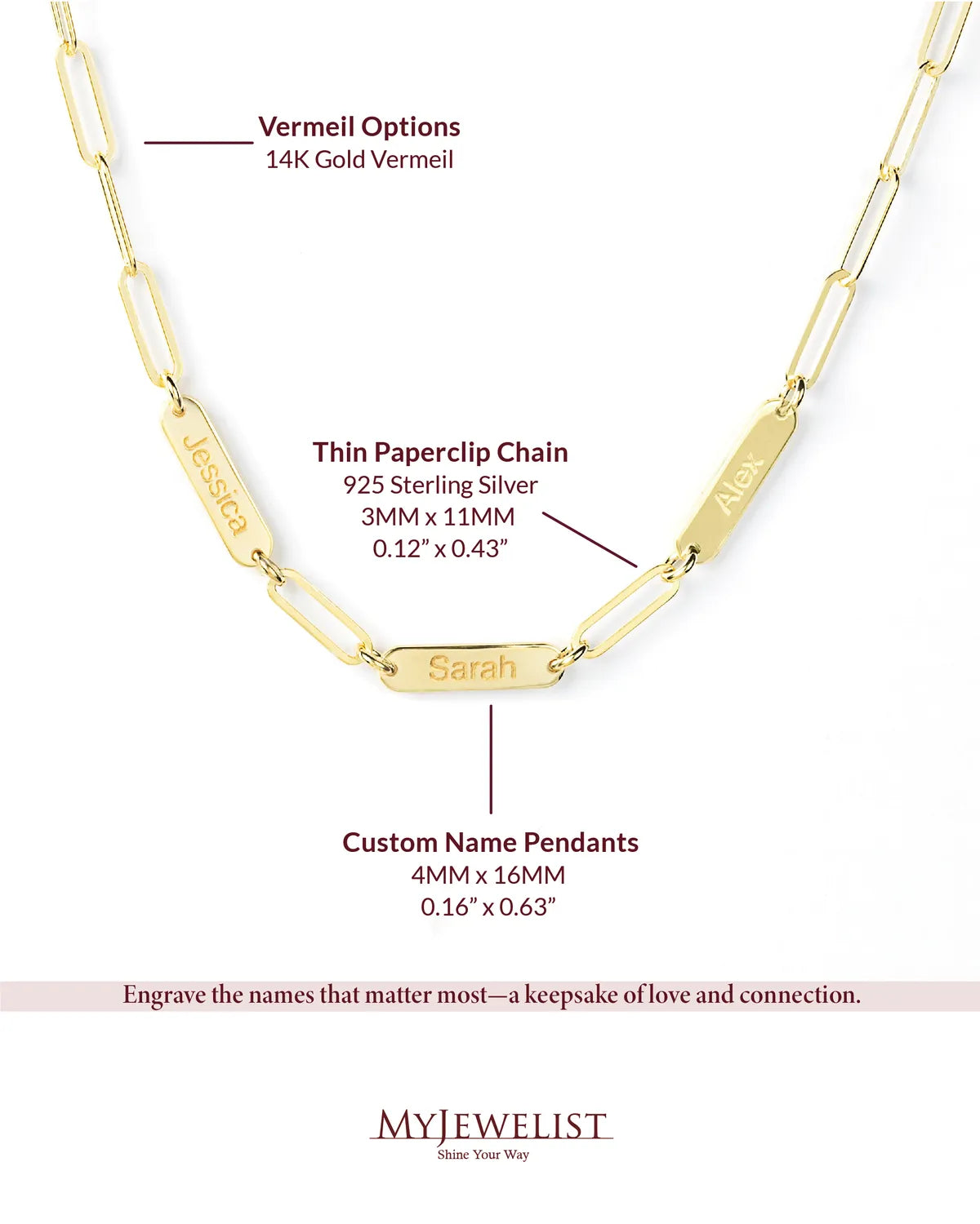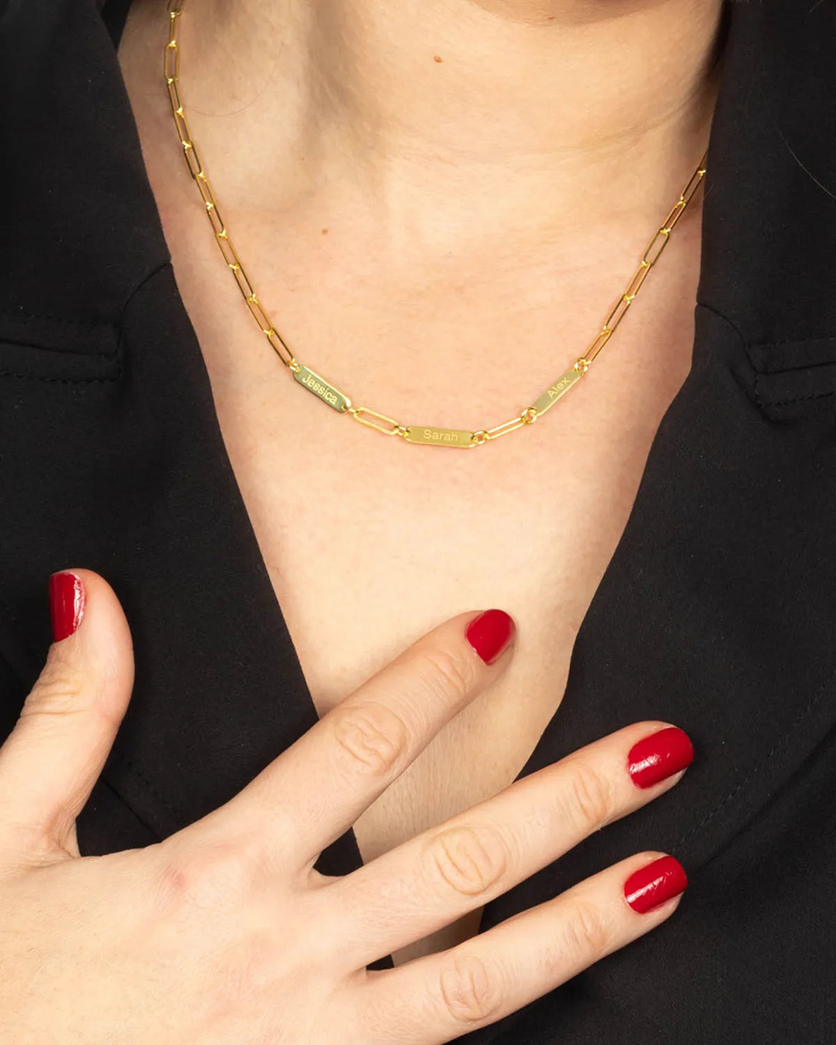 Custom Engraved Gold Paperclip Necklace – Up to 5 Names of Loved Ones