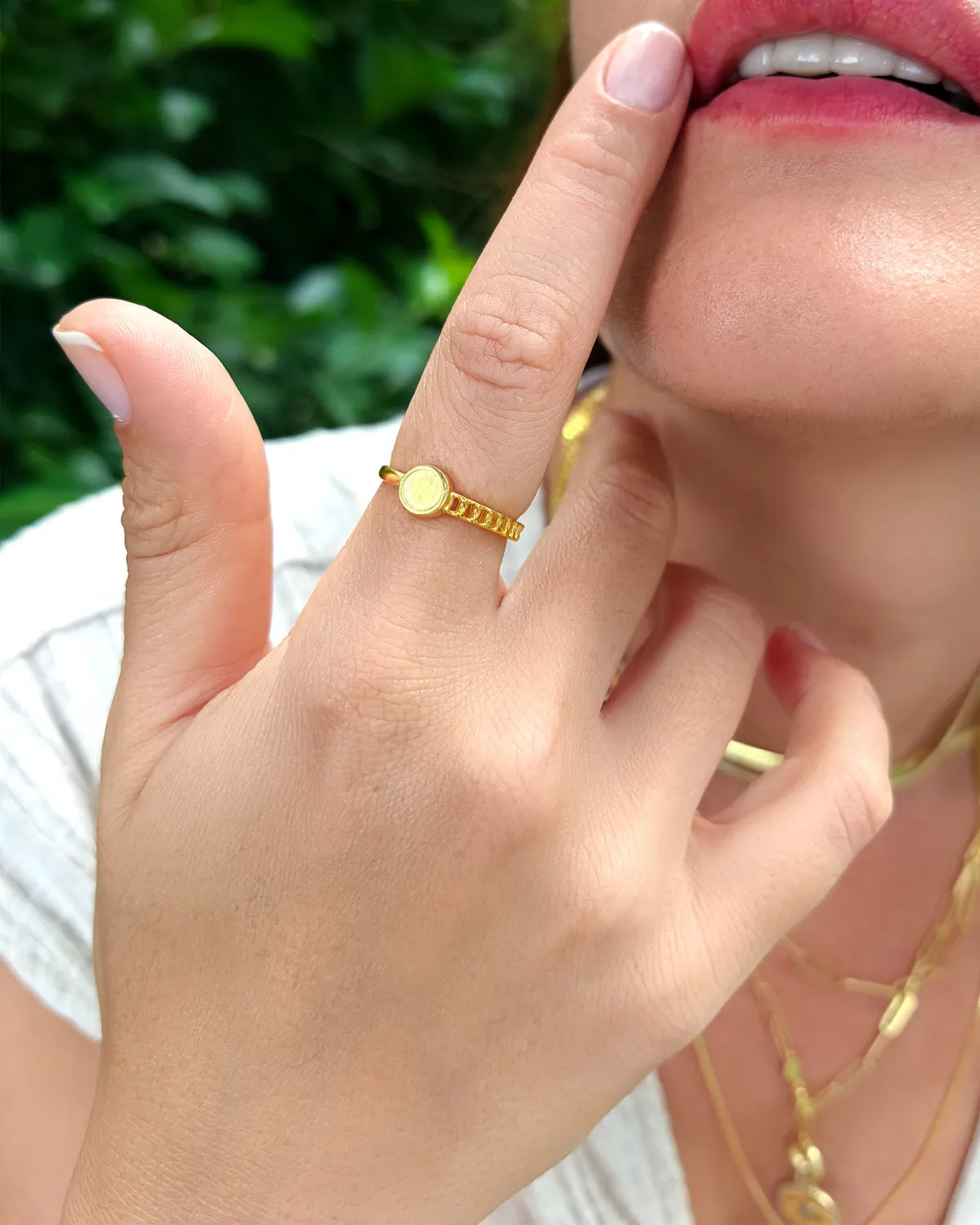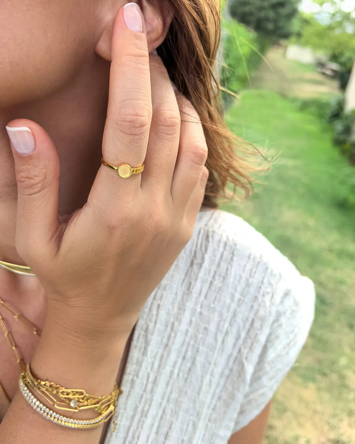Axis Disc Ring 14K Gold Vermeil Ring – Minimalist Half Chain, Half Band Design