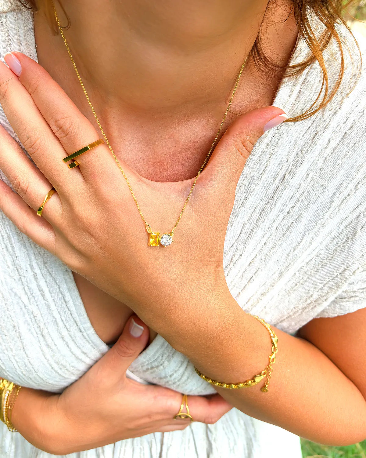This necklace is more than jewelry — it’s a story you carry close to your heart. The rectangular stone stands for strength, direction, and the grounded energy of the masculine. The circular stone reflects eternity, softness, and the infinite embrace of the feminine. Side by side, they remind us that love thrives in balance — different yet deeply connected.
