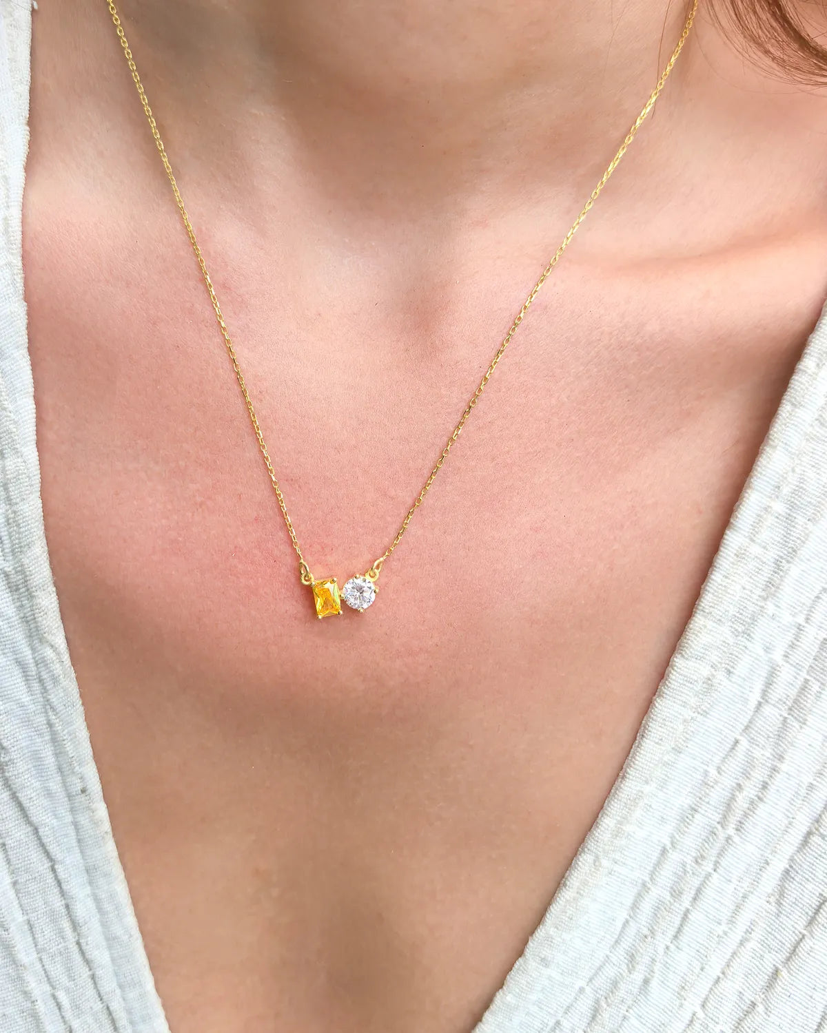 Dual Soul Birthstone Necklace – 14K Gold Vermeil Couple Pendant