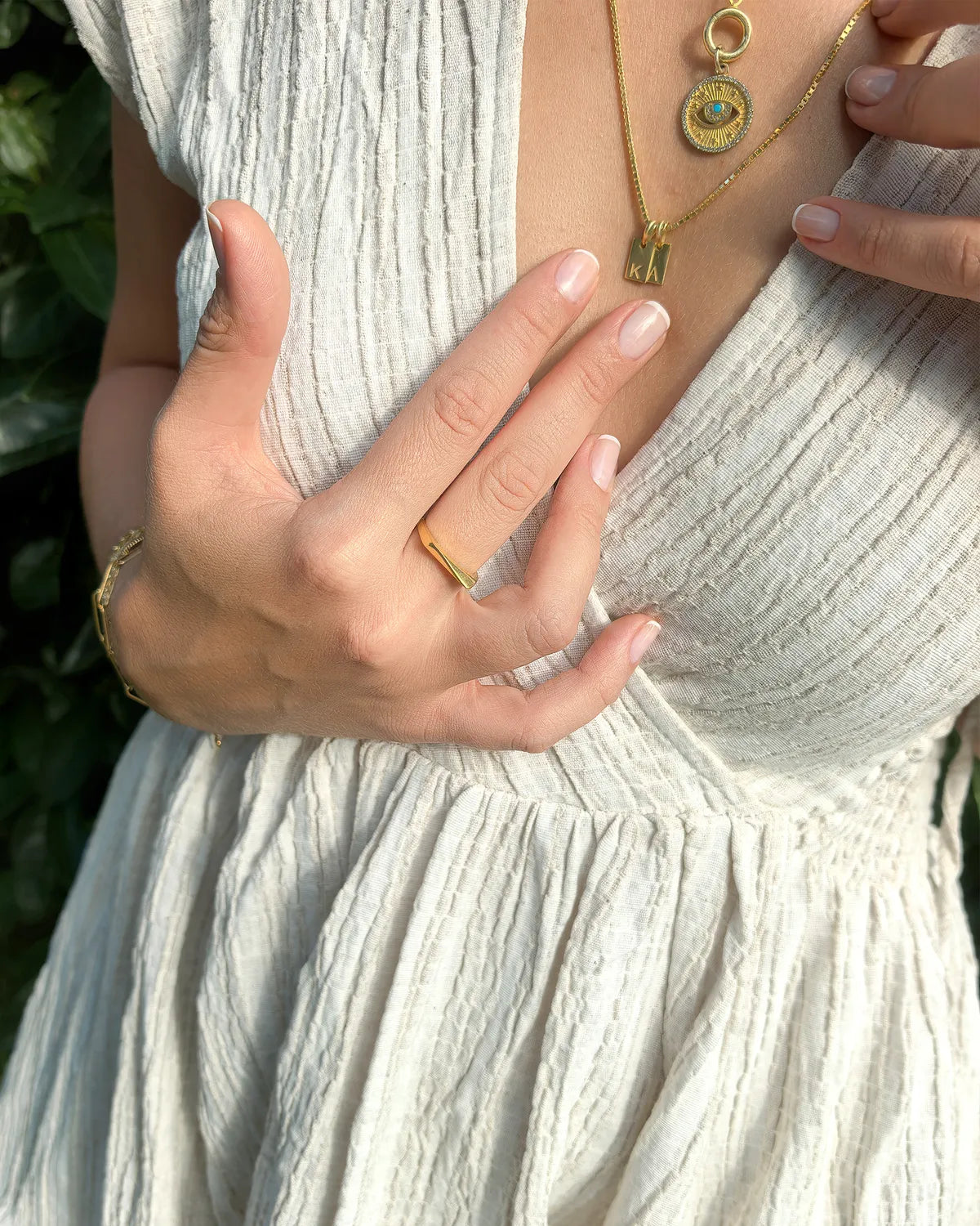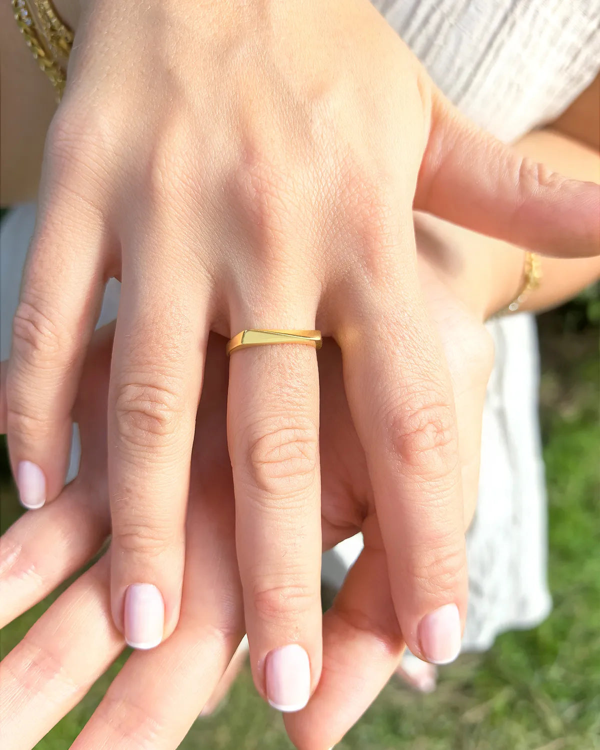 A bold touch of geometry, softened by golden warmth. ✨ Our Geometric Triangle Bar Gold Vermeil Ring from the Duality Collection is designed for women who embrace contrasts — sharp yet fluid, structured yet effortless. The sleek bar silhouette reflects strength and clarity, while its slender gold band keeps it refined and wearable for every day.