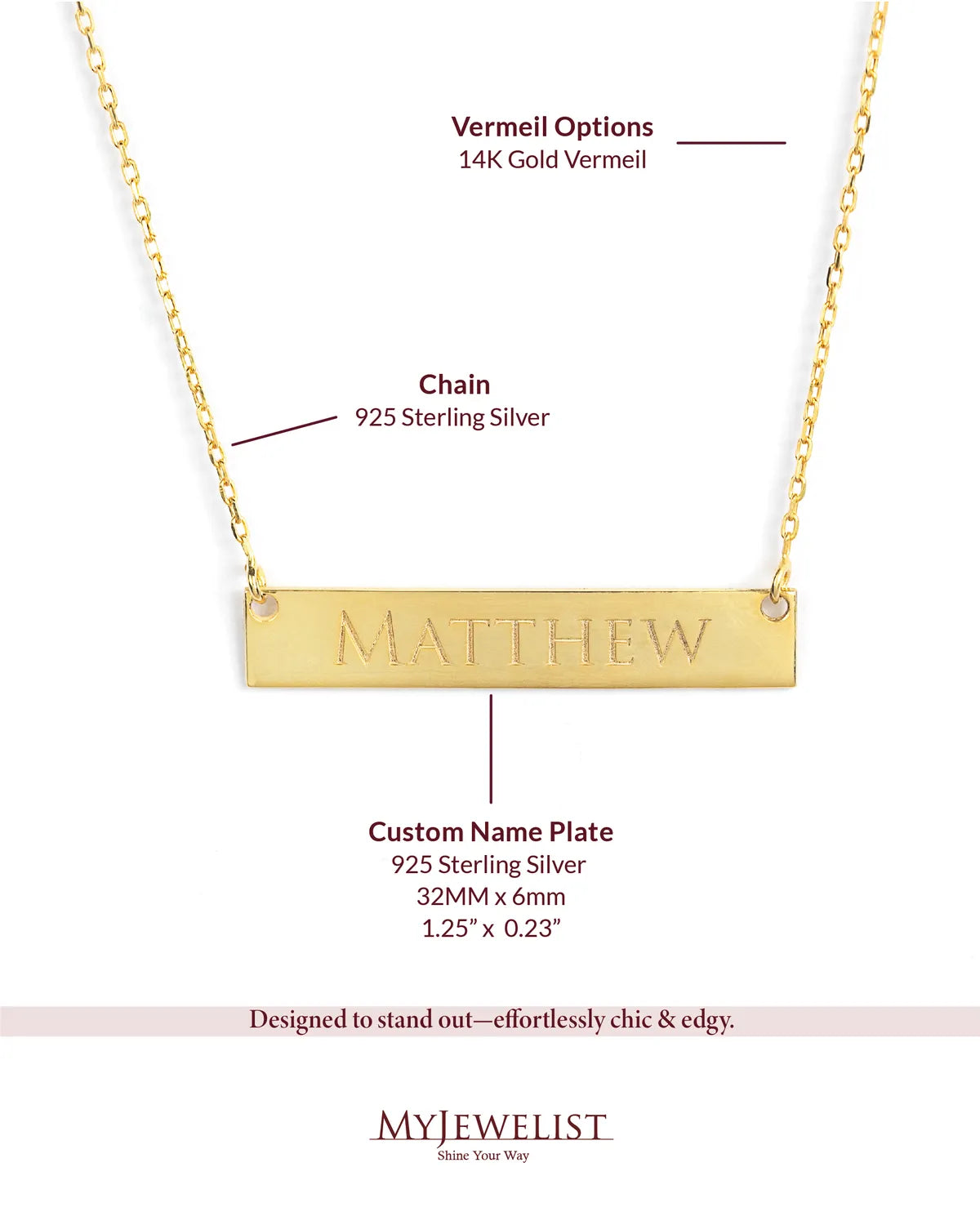 Gold Bar Name Necklace – Custom 14K Gold Vermeil Engraved Jewelry