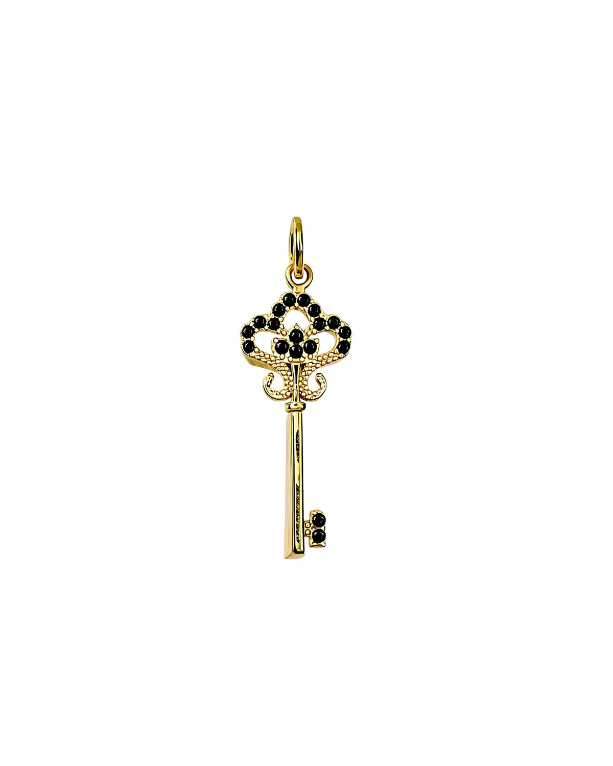 14K Gold Vermeil Key Pendant – Black Onyx Charm, Symbolic & Elegant