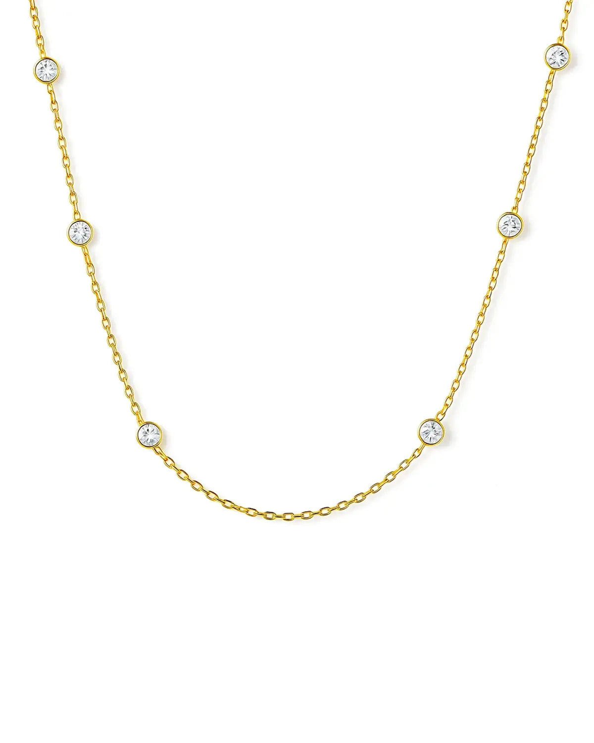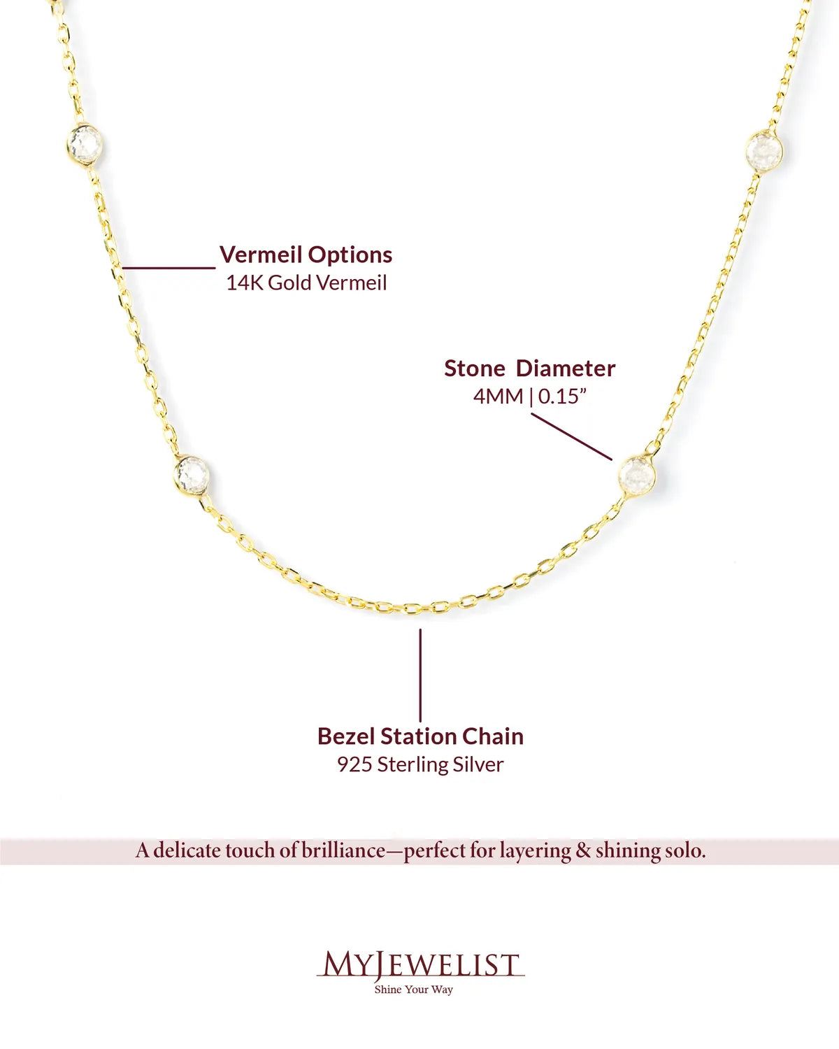 14K Gold Vermeil Bezel Station Necklace – Elegant & Minimalist Jewelry
