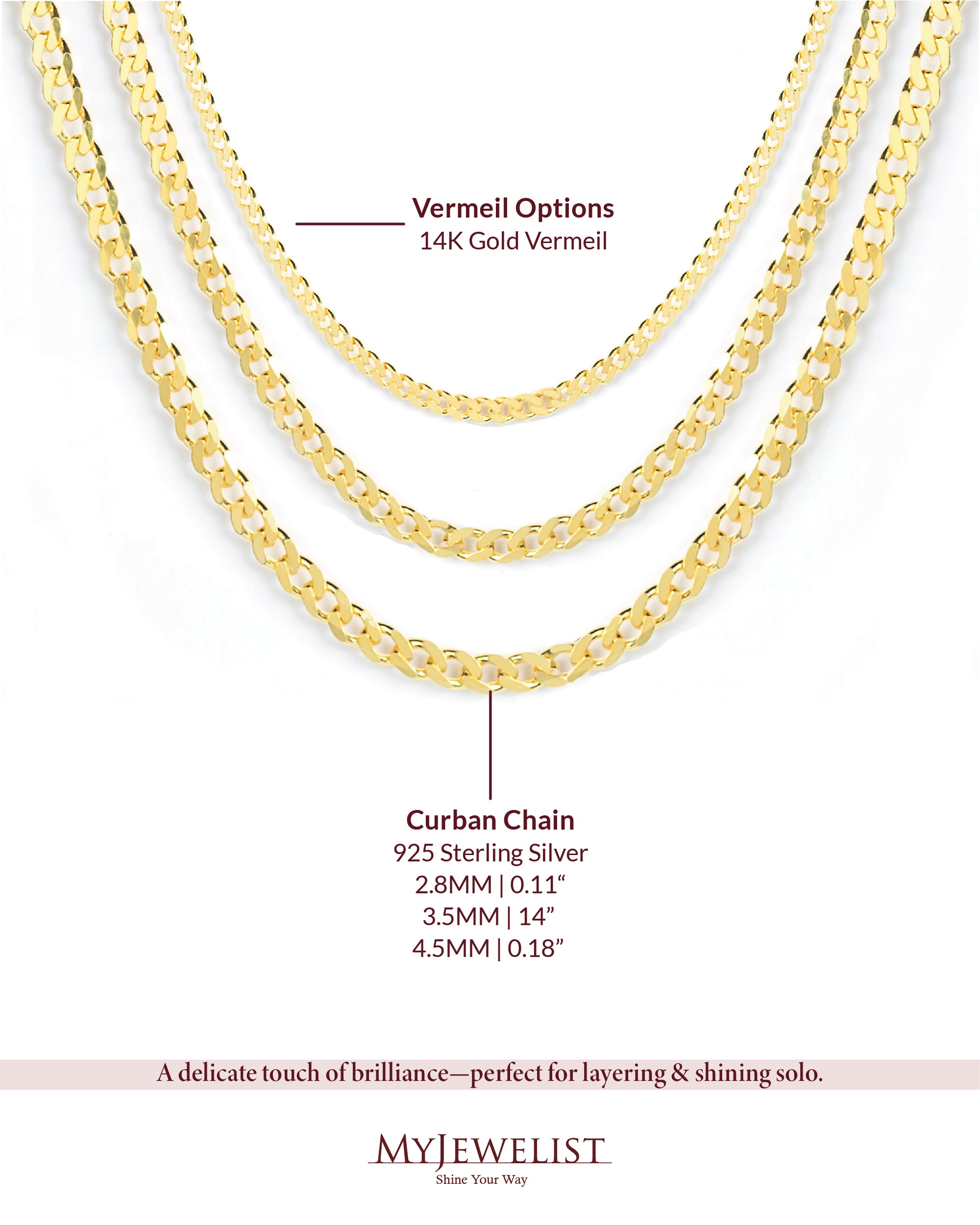 - A touch of timeless luxury—our jewelry is crafted with a thick 2.5–3.0 micron layer of 18K gold over a solid 925 sterling silver base. That’s 5x thicker than standard gold plating.