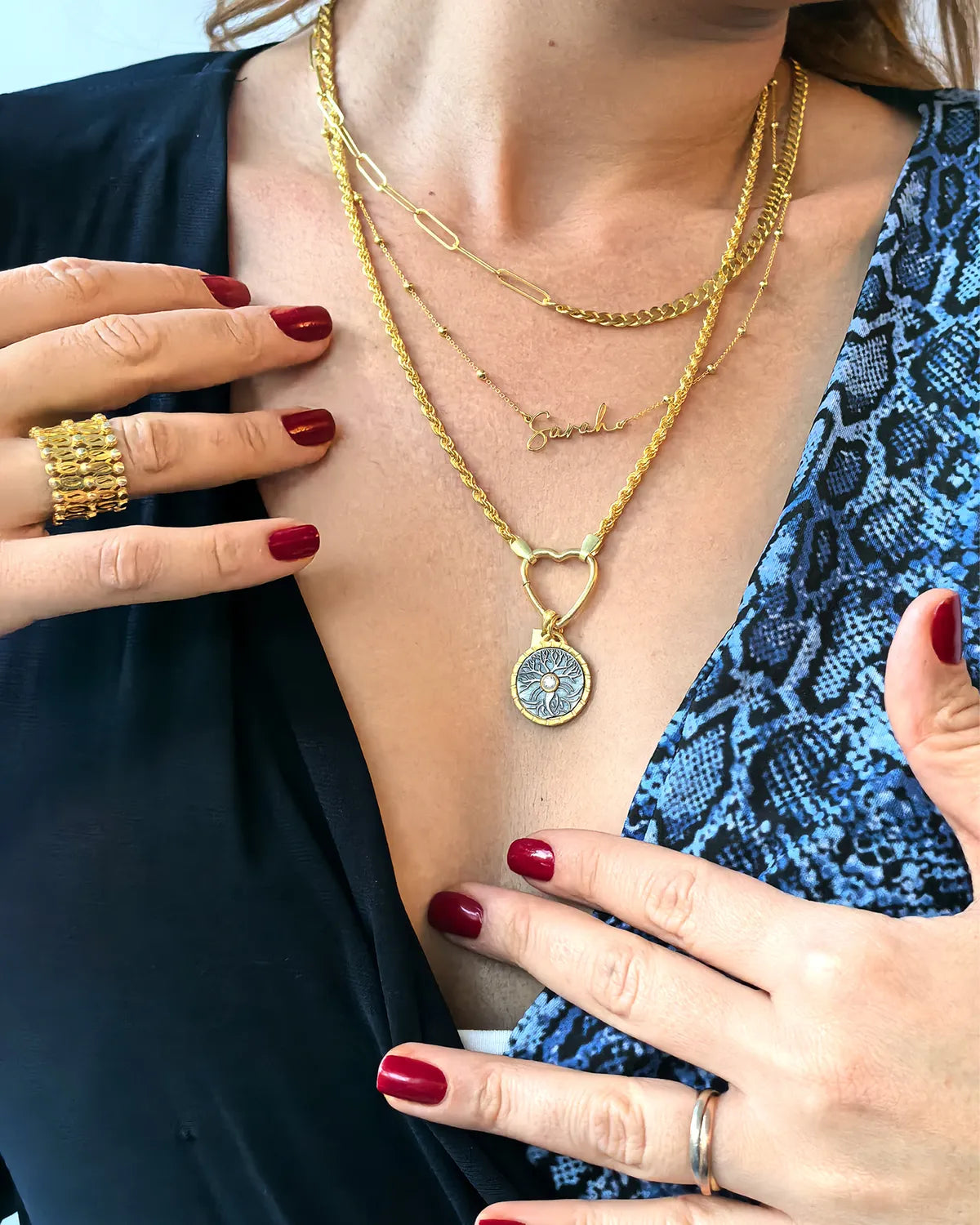 Delicate yet bold, this Gold Vermeil Heart Charm Necklace is a piece made to carry both sentiment and style. The handcrafted rope chain adds texture and strength, while the heart charm symbolizes love, connection, and the stories closest to you.