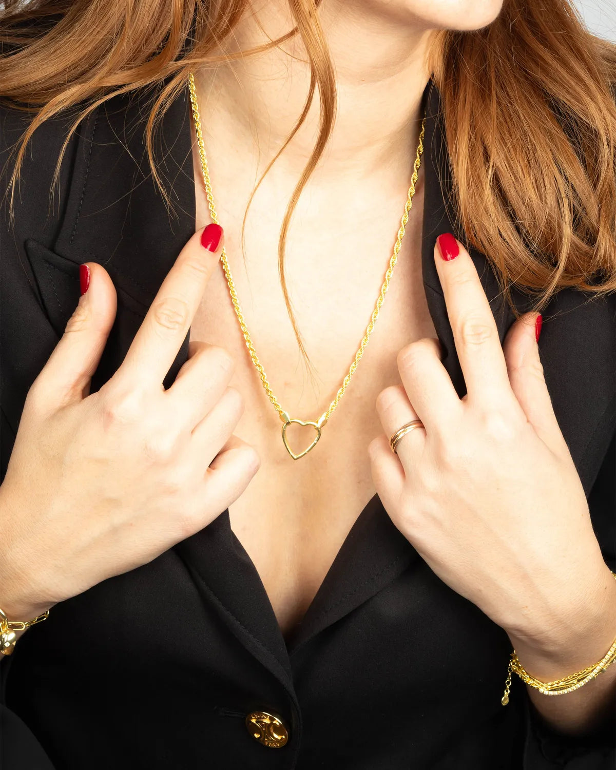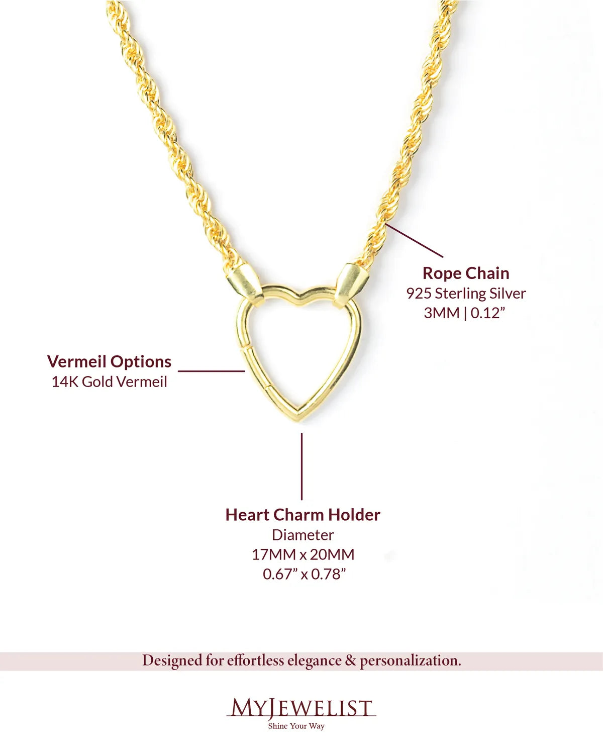 Gold Vermeil Heart Charm Necklace — Rope Chain Duality Design