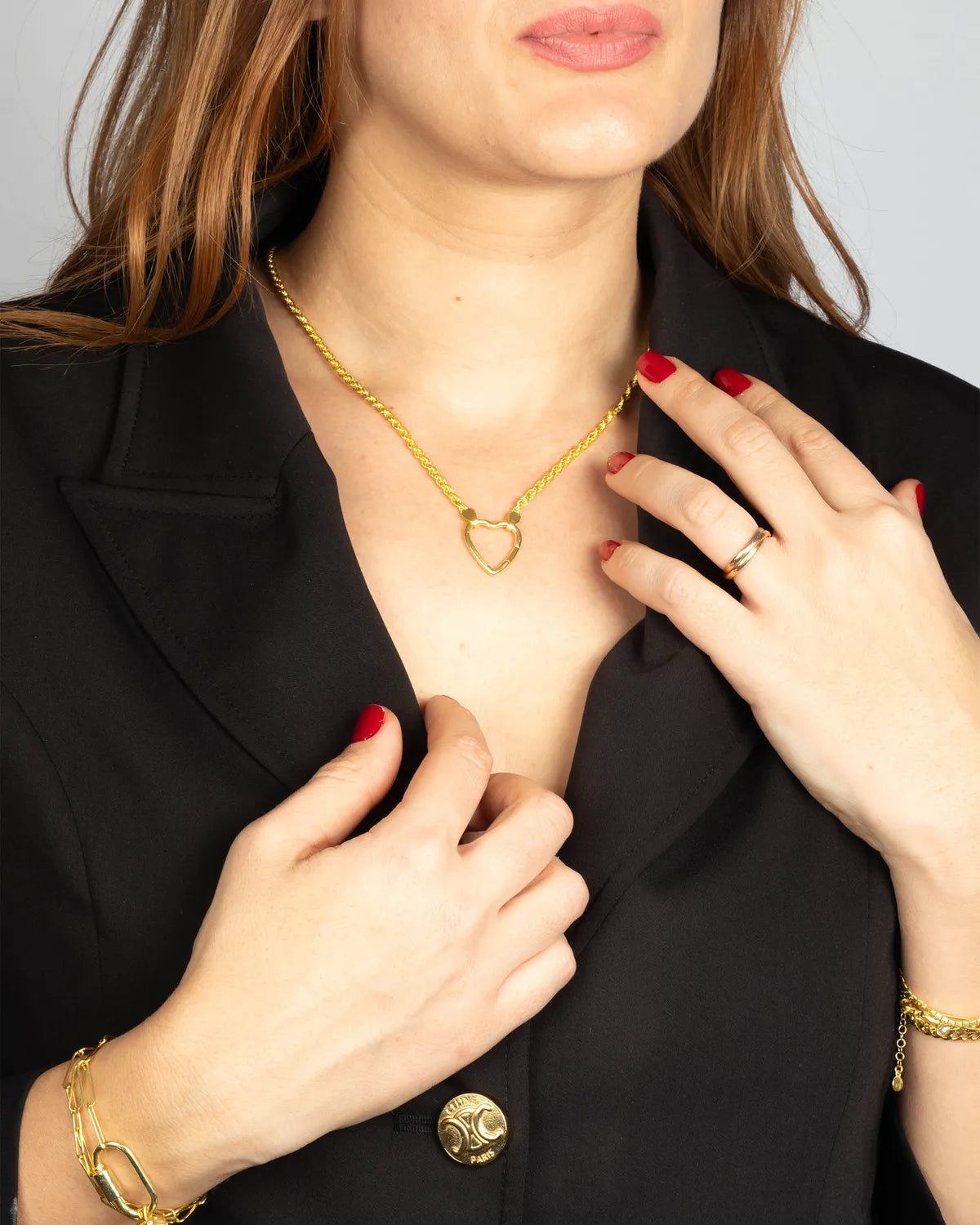 The design embodies Duality — soft curves of the heart balanced by the rope’s intricate twists, a reflection of strength and tenderness woven together. Wear it as your daily signature, or layer it with other pieces to create a look that’s uniquely yours.