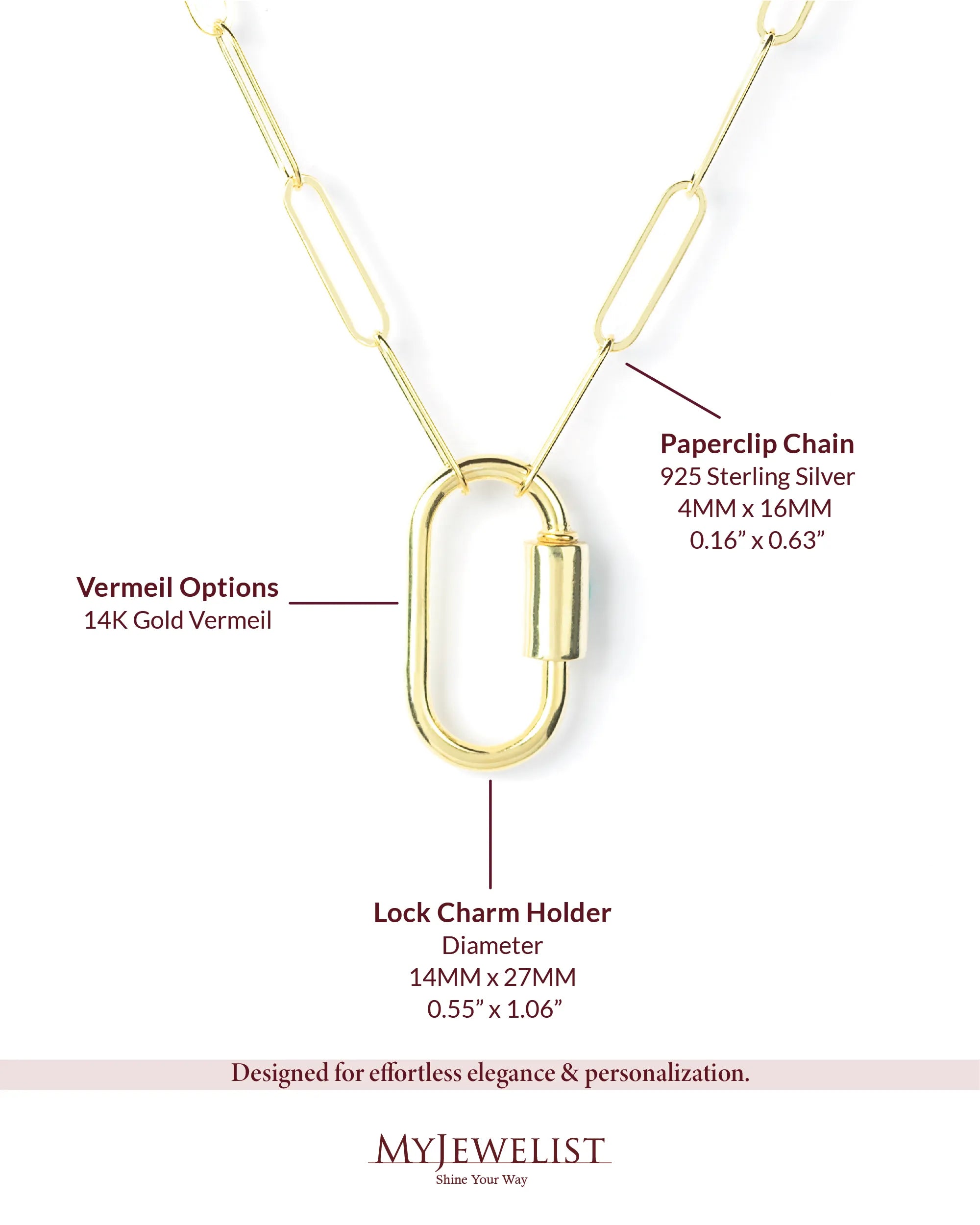 Gold Vermeil Thin Paperclip Lock Charm Necklace — Minimalist Jewelry