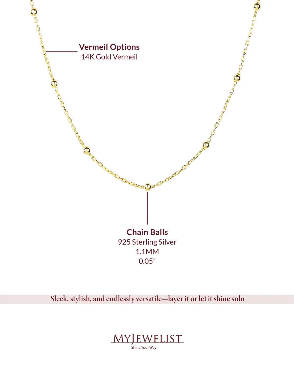 A delicate dance of light and movement—this 14K Gold Vermeil Satellite Chain Necklace is poetry in motion. Tiny golden spheres catch the light with every step, whispering elegance in their subtle shimmer. A refined essential, effortlessly versatile, designed to complement your natural glow. Layer it, love it, make it yours.