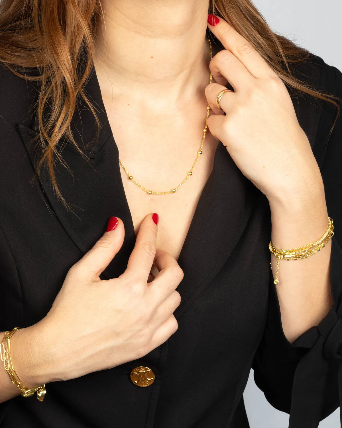 A delicate constellation of light, the 14K Gold Vermeil Singapore Satellite Chain Necklace is a quiet tribute to movement, elegance, and grace. Twisted gold links catch the light like ripples in water, while dainty golden spheres orbit along its path—effortlessly reflecting your inner glow. Whether layered or worn alone, this piece is a luminous whisper of refinement.