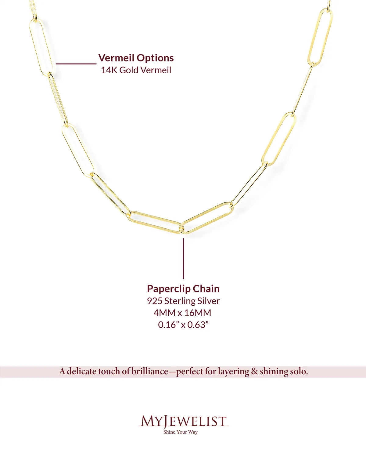 14K Gold Vermeil Paperclip Chain Necklace – Minimalist & Modern