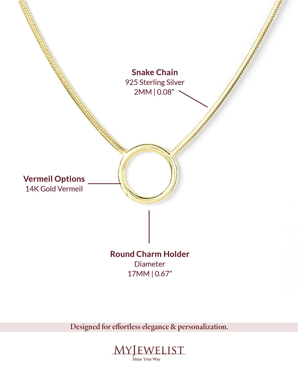Gold Vermeil Round Charm Holder Necklace — Snake Chain Duality Design