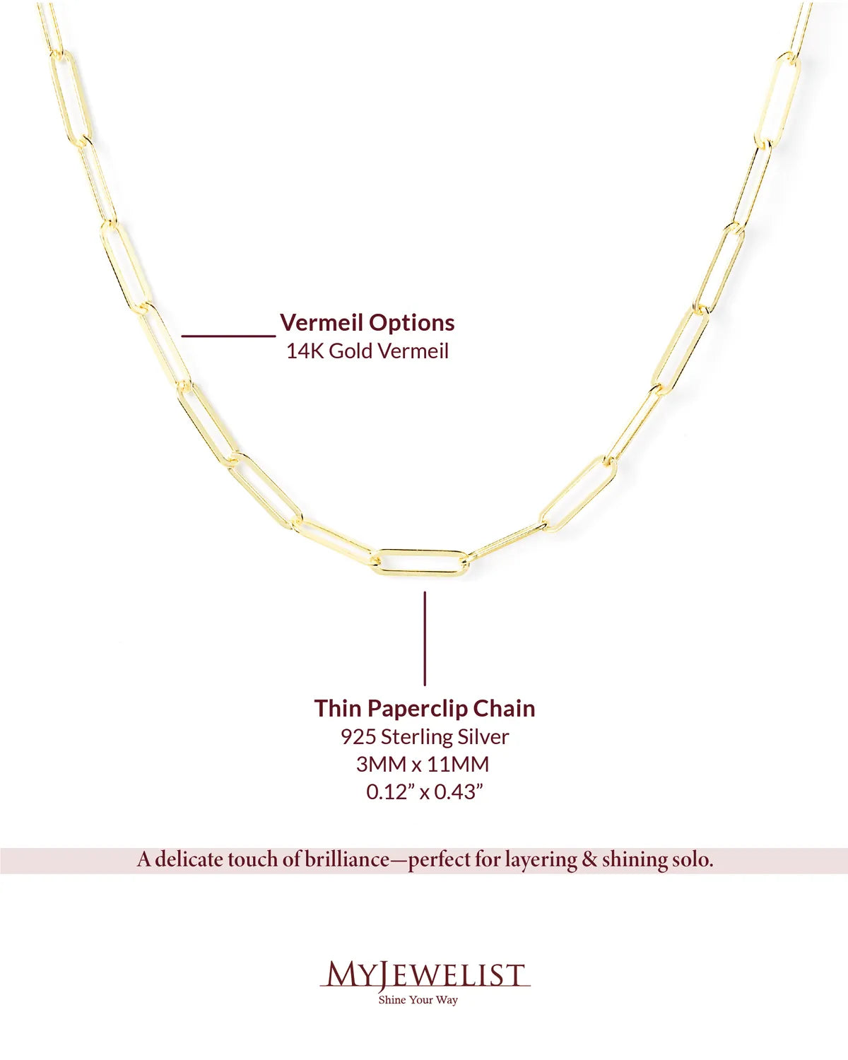 14K Gold Vermeil Thin Paperclip Chain Necklace – Minimalist Jewelry