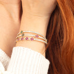 Multi-Stone Clover 14K Gold Tennis Bracelet – Mix Moissanite Titanium Bangle
