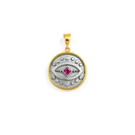 Antique Evil Eye Gold Pendant – Sterling Silver Medallion with Gem