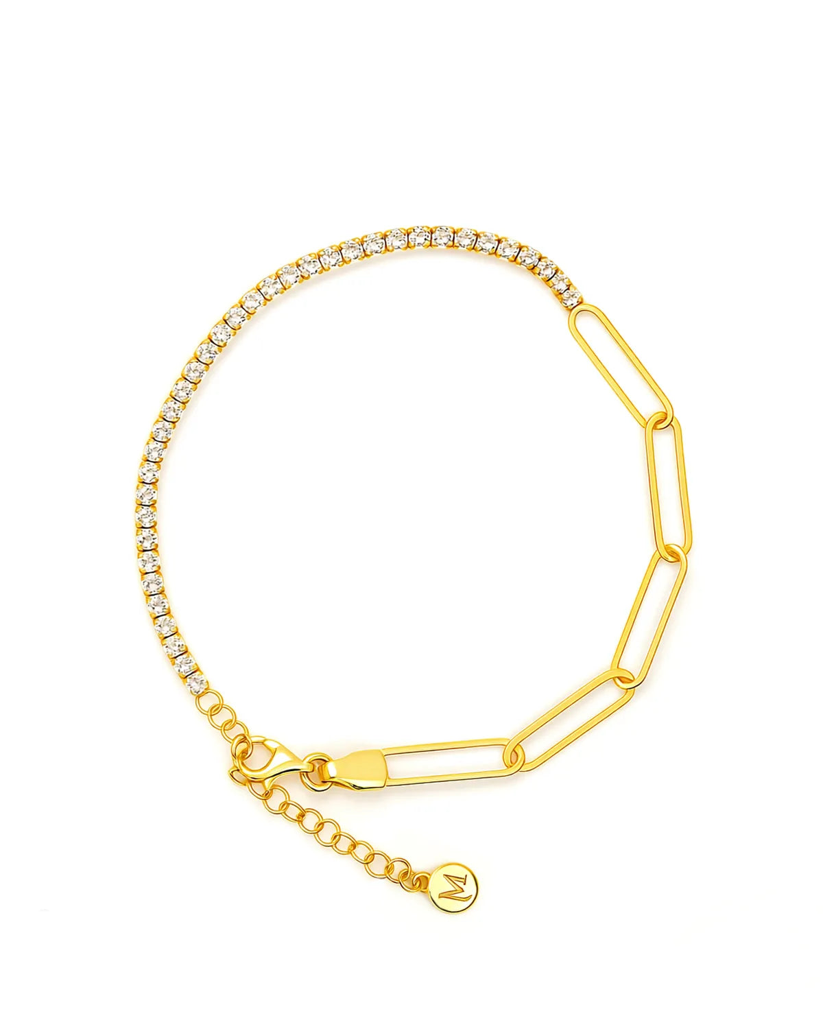 Duality Tennis & Paperclip Bracelet – 14K Gold Vermeil