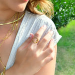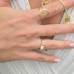 Golden and enduring—our 14K Gold is a blend of rich gold with strength-enhancing alloys, creating the perfect balance of luxury and durability. Its warm, honeyed glow is designed to be cherished for a lifetime, evolving beautifully with every wear. Unlike plated jewelry, this is solid gold through and through, made for everyday elegance.