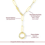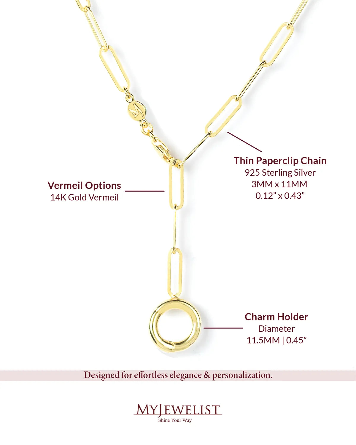 Gold Vermeil Paperclip Lariat Necklace — Duality Charm Holder Design