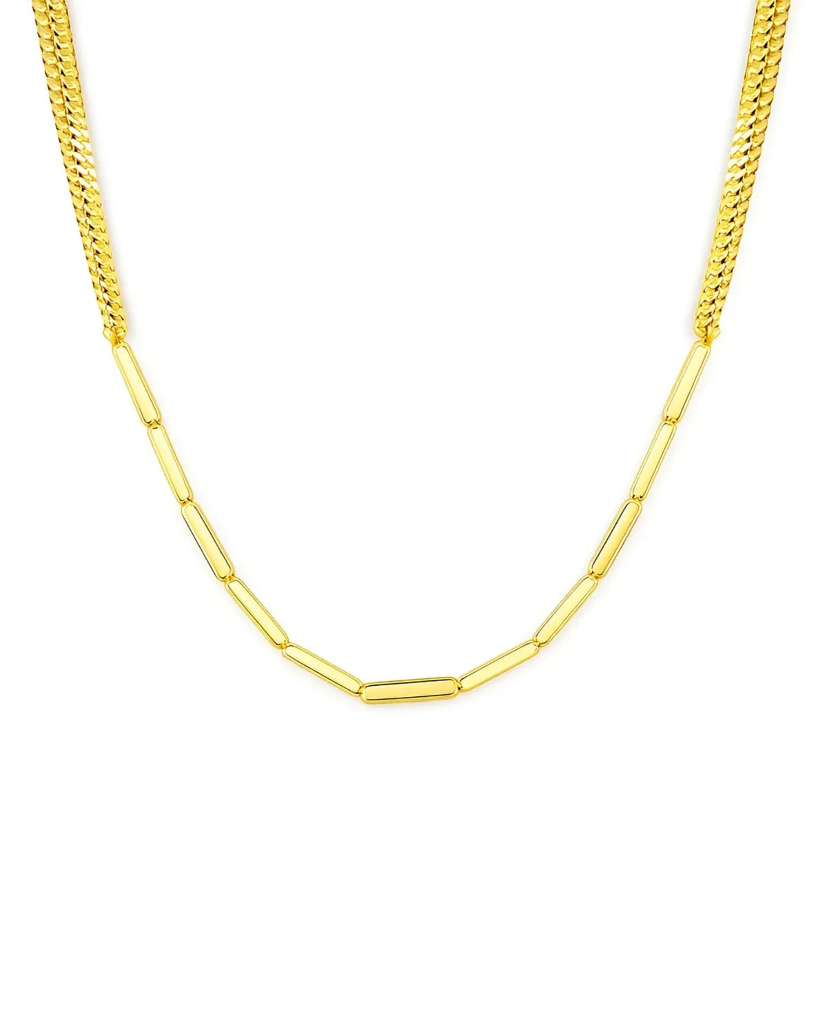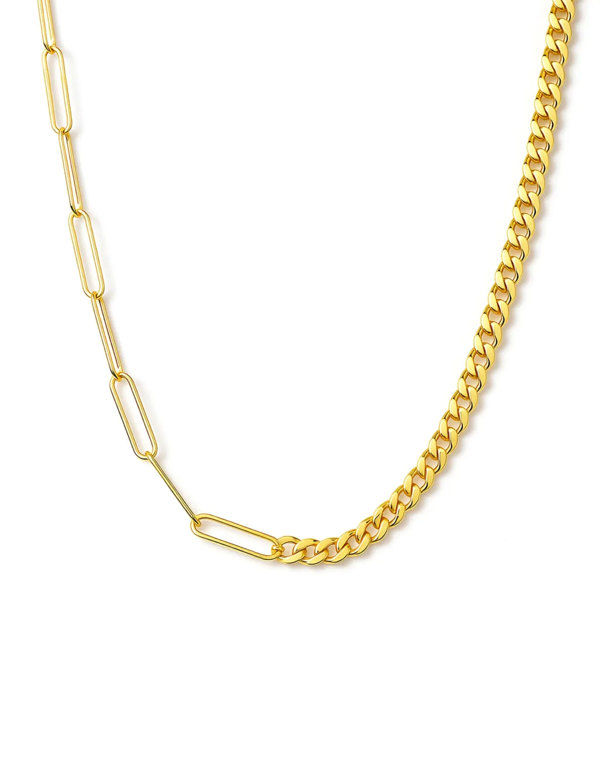 Gold Vermeil Paperclip & Curb Chain Necklace – Bold Layered Statement