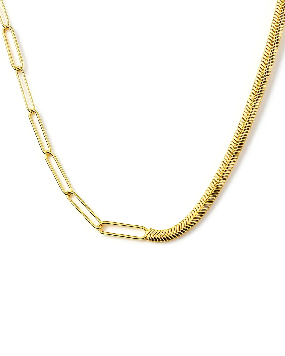 Gold Vermeil Paperclip & Herringbone Necklace – Bold Layered Statement