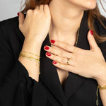 Golden and enduring—our 14K Gold is a blend of rich gold with strength-enhancing alloys, creating the perfect balance of luxury and durability. Its warm, honeyed glow is designed to be cherished for a lifetime, evolving beautifully with every wear. Unlike plated jewelry, this is solid gold through and through, made for everyday elegance.