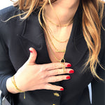 Golden and enduring—our 14K Gold is a blend of rich gold with strength-enhancing alloys, creating the perfect balance of luxury and durability. Its warm, honeyed glow is designed to be cherished for a lifetime, evolving beautifully with every wear. Unlike plated jewelry, this is solid gold through and through, made for everyday elegance.