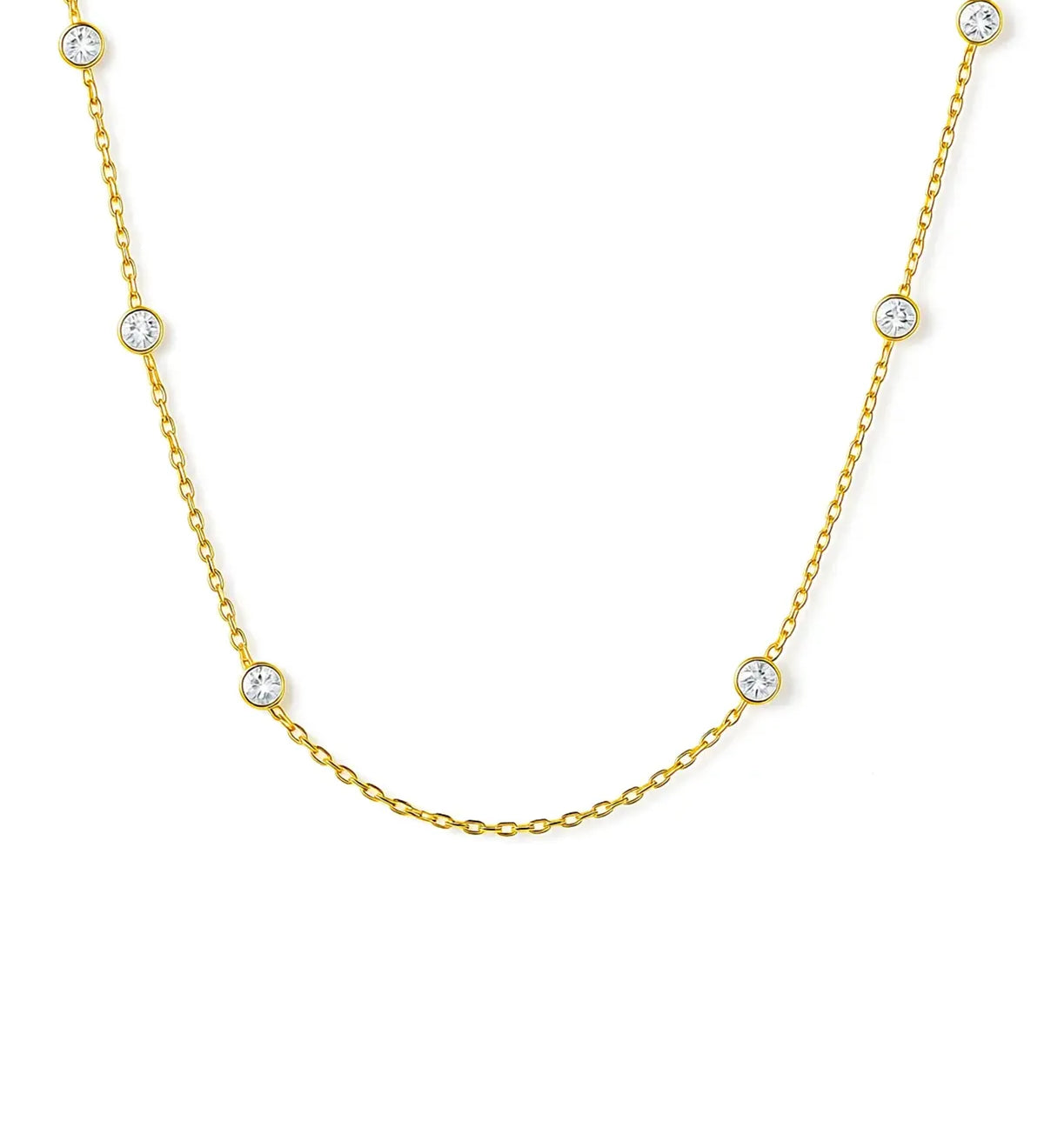 14K Gold Vermeil Bezel Station Necklace – Elegant & Minimalist Jewelry