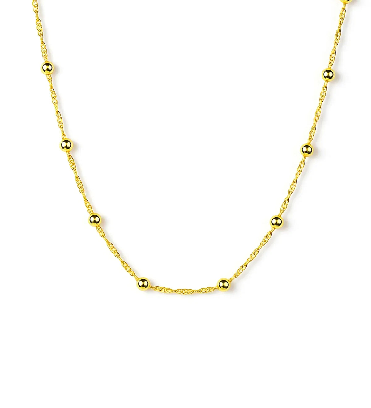 Gold Vermeil Satalitte Necklace – Minimal & Chic Beaded Chain