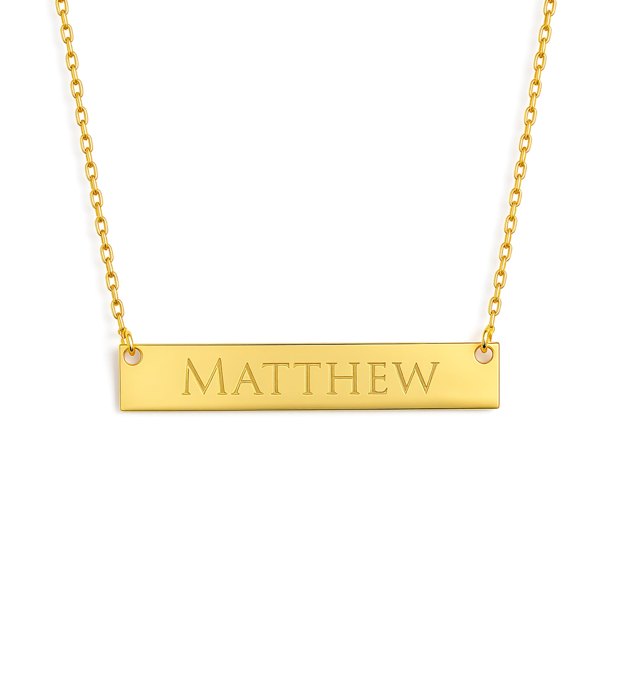 Gold Bar Name Necklace – Custom 14K Gold Vermeil Engraved Jewelry
