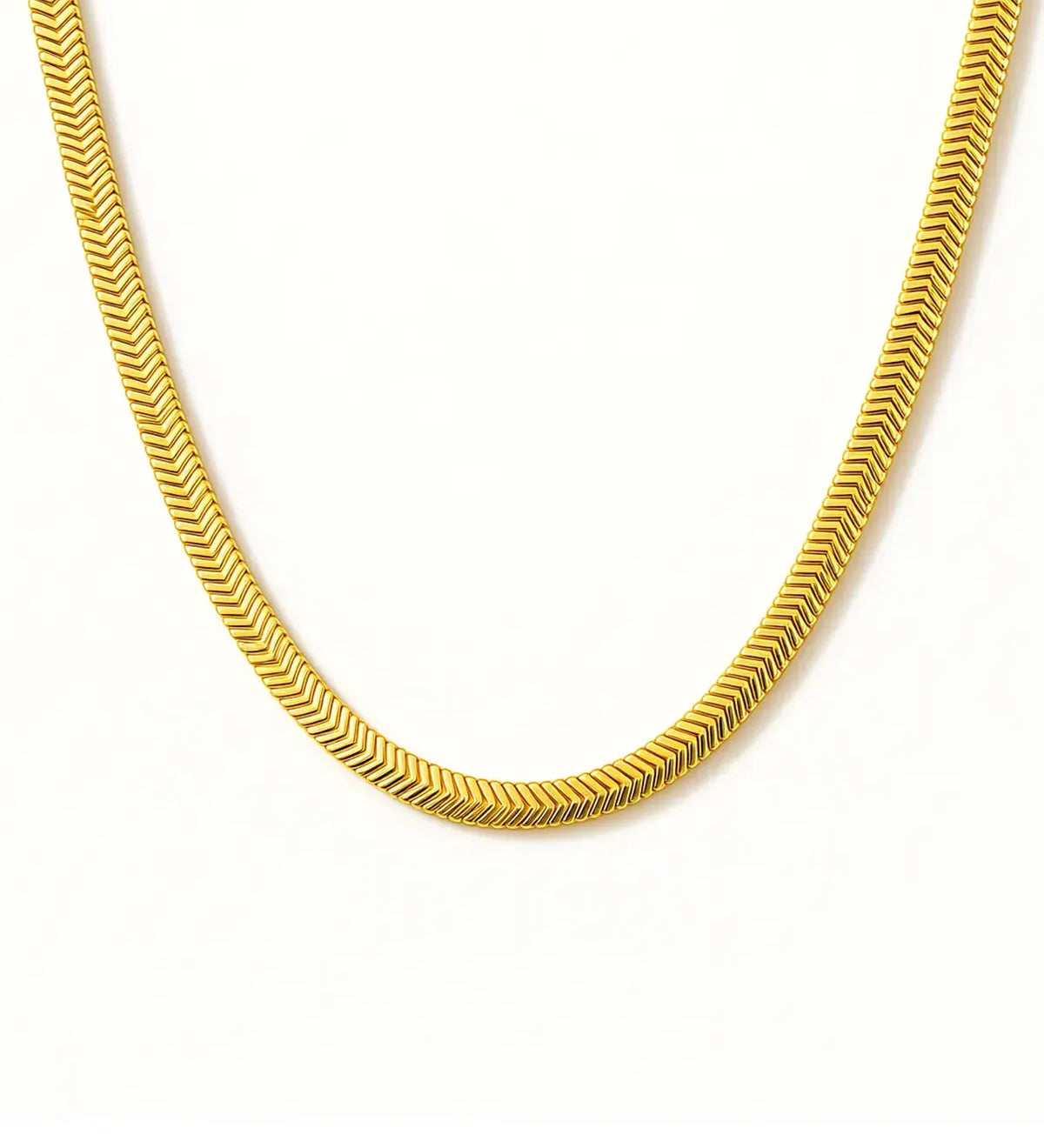 14K Gold Vermeil Herringbone Necklace – Sleek, Fluid & Timeless