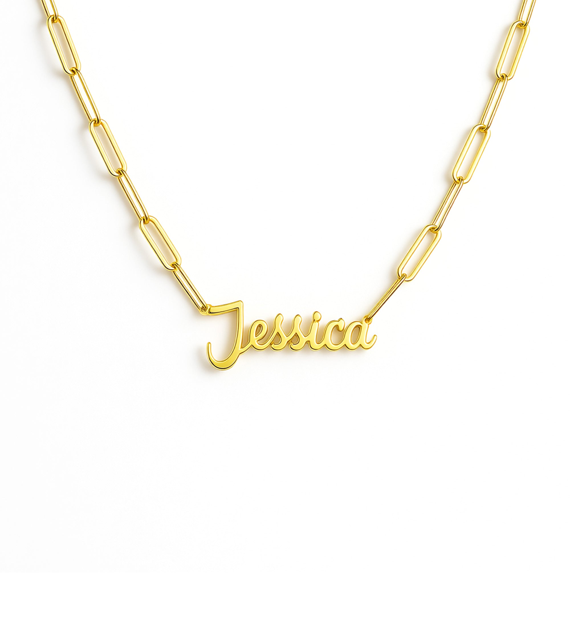Gold Name Paperclip Necklace – 14K Vermeil Signature Chain