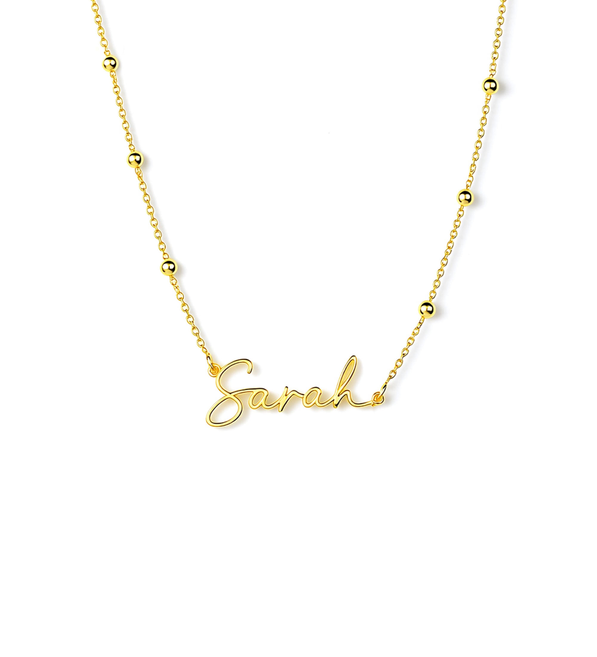 Custom Name Necklace in Gold Vermeil – Script Pendant on Satellite Chain