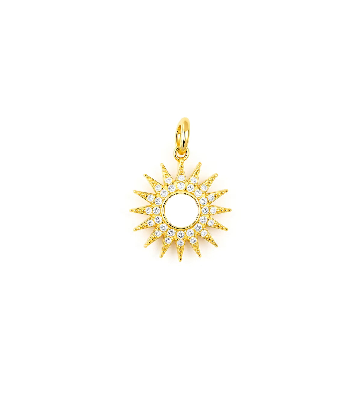Gold Sun Charm Pendant – Radiant CZ Sunburst Necklace for Light