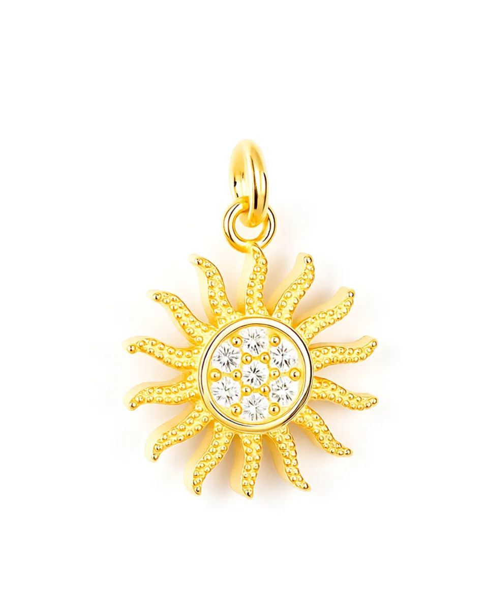 Gold Sun Charm Pendant – Radiant CZ Sunburst Necklace for Light
